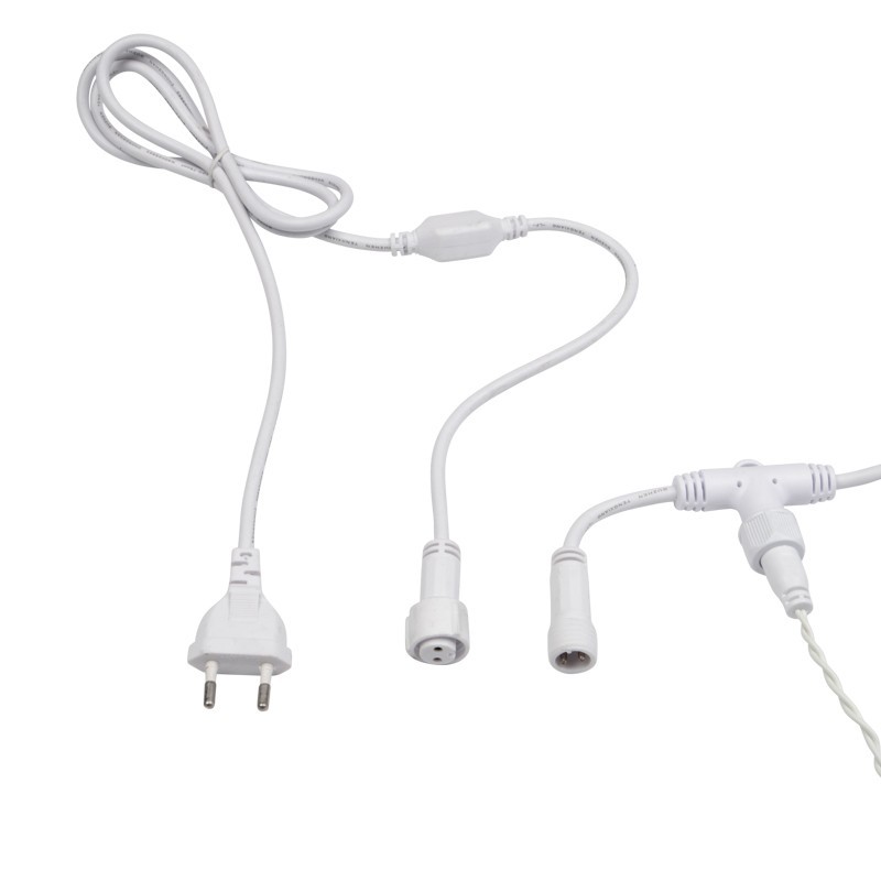На концах шины располагаются коннекторы, которые предназначены для последовательного соединения нескольких гирлянд в большой занавес для украшения больших площадей или объемных объектов.