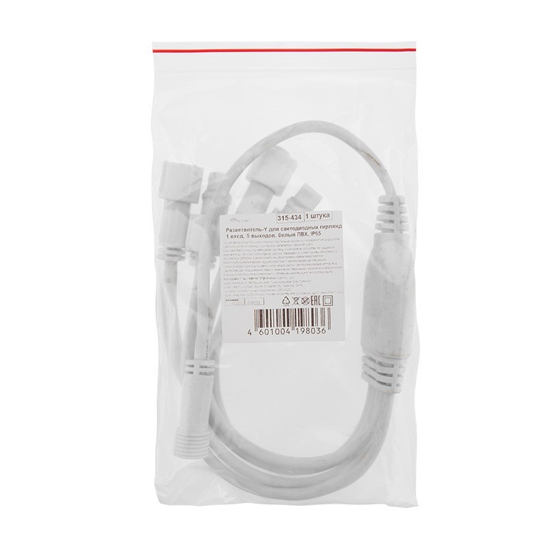 Разветвитель -Y для уличных гирлянд Professional (1 вход, 5 выходов) белый ПВХ